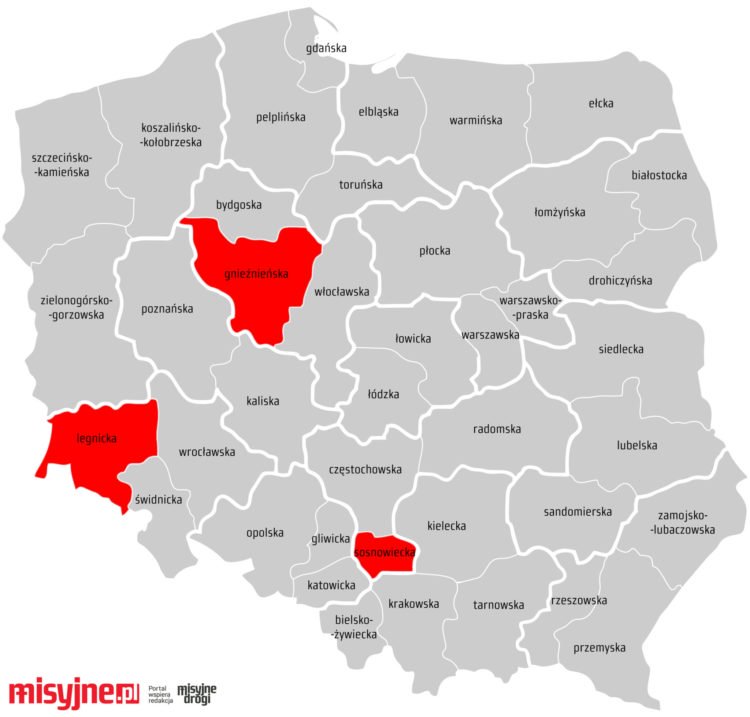 Mapkę przygotowaliśmy 11 czerwca 2020 o 18:00 na podstawie komunikatów ze stron archidiecezji. Jeśli wiesz, że w twojej archidiecezji czy diecezji jest inaczej – daj znać. Uaktualnimy!