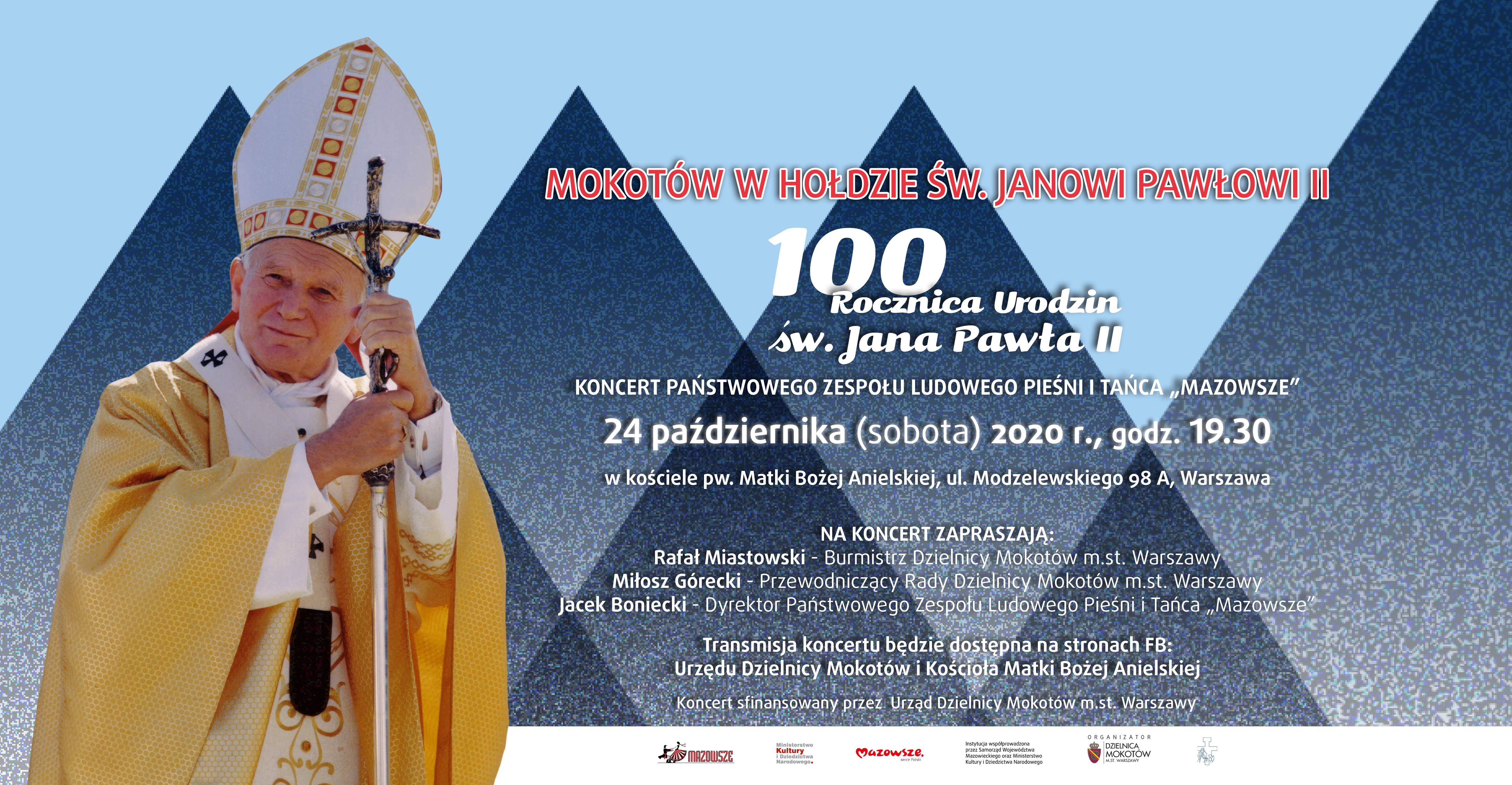 Z okazji przypadającej w 2020 roku 100. rocznicy urodzin Karola Wojtyły, dzielnica Mokotów będzie organizatorem niezwykłego wydarzenia. 24 października, w sobotę, o godz. 19. 30, w kościele