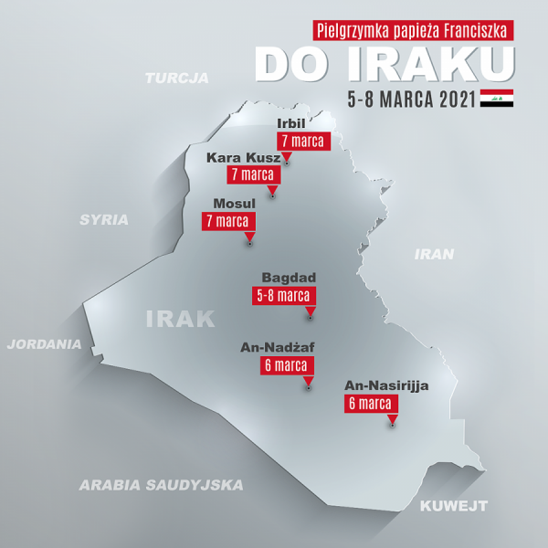 Wyznał, że wiele myślał w tych latach o irackich chrześcijanach, którzy tak wiele wycierpieli, ale nie dali się pognębić. "Teraz przybywam do waszej błogosławionej i zranionej ziemi jako pielgrzym nadziei. U was, w Niniwie, rozbrzmiało proroctwo Jonasza, które zapobiegło zniszczeniu i przyniosło nową nadzieję, nadzieję Boga. Dajmy się zarazić tą nadzieją, która zachęca nas do odbudowy i zaczynania od nowa. A w tych trudnych czasach pandemii pomagajmy sobie nawzajem, by umacniać braterstwo, by wspólnie budować pokojową przyszłość. U was, tysiące lat temu, Abraham rozpoczął swoją pielgrzymkę. Dziś naszym zadaniem jest jej kontynuowanie, przemierzając wspólnie drogi pokoju! Dlatego modlę się dla was wszystkich o pokój i błogosławieństwo Najwyższego" - stwierdził papież, prosząc wszystkich, abyś towarzyszyli mu poprzez modlitwę.